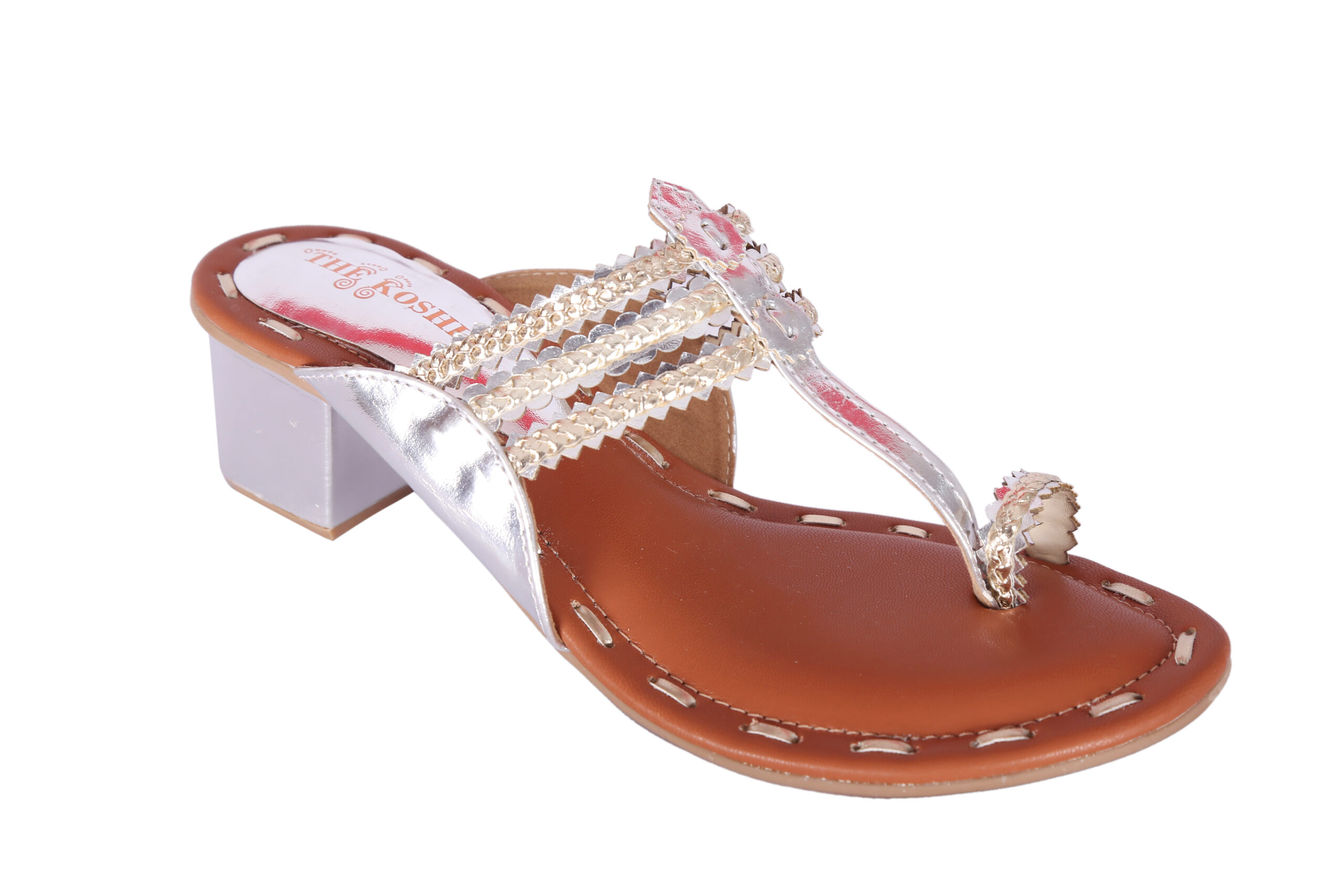 1. Handcrafted Golden 2 inch block heel Kolhapuris with intricate multi-strap detailing